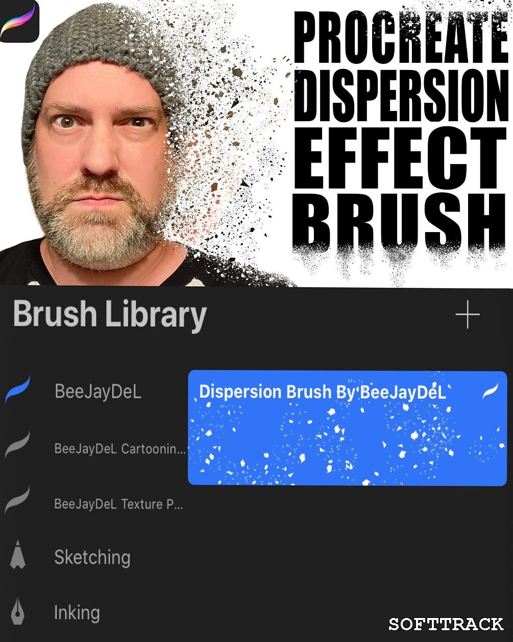 Met dit penseel voor Procreate kun je een cool dispersie-effect creëren in Procreate met behulp van laagmaskers (bekijk zeker de video voor een complete, stapsgewijze tutorial over hoe je het moet gebruiken!)