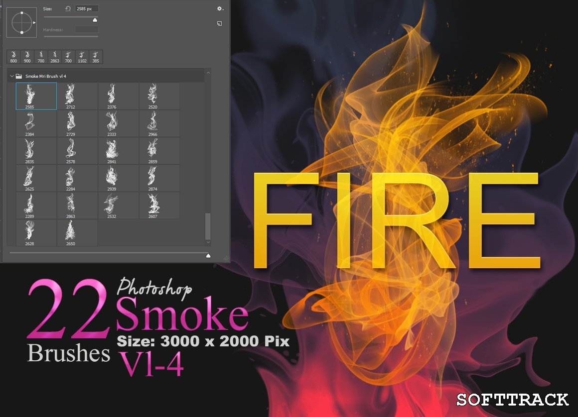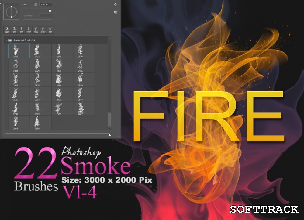 Pack bevat 22+ hoge kwaliteit Smoke Photoshop Brushes, Creëer professionele grafische effecten in seconden!