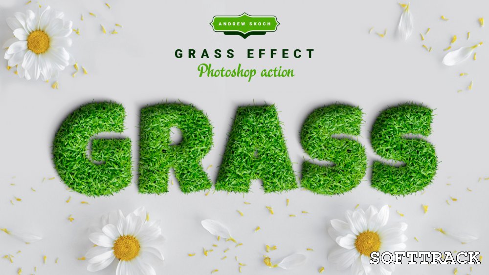 Maak uw tekst of logo met gras begroeid! Het realistische effect van groen gras, herfstgras, rood gras, tropisch gras in slechts een paar seconden.