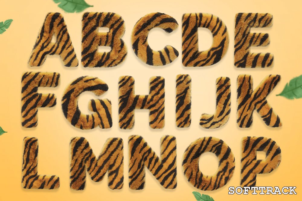 Laat je wilde kant zien met deze ongelooflijke 3D-letterset met tijgerhuid patroon als thema.