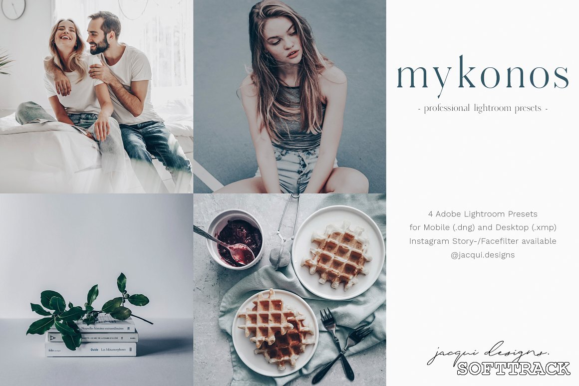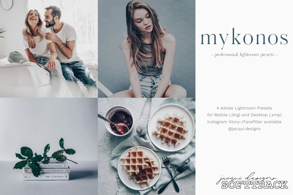 Het pakket bevat 4 Adobe Lightroom-presets in zowel DNG- als XMP-indeling voor mobiel en desktop.