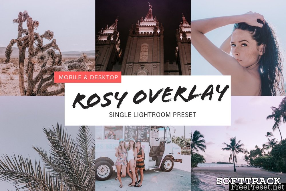 ROSE OVERLAY ——— Deze voorinstelling is doordrenkt met een prachtige zachtroze gradiëntoverlay. Werkt het beste met licht onderbelichte afbeeldingen. Pas zo nodig gesplitste tonen en verloop aan.
