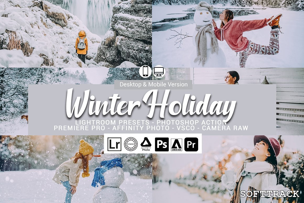 20 voorinstellingen voor desktop en mobiel voor wintervakanties, voorinstellingen voor affiniteitsfoto's, voorinstellingen voor Adobe Premiere Pro, Photoshop-acties, vsco-voorinstellingen, Lightroom-voorinstellingen,
