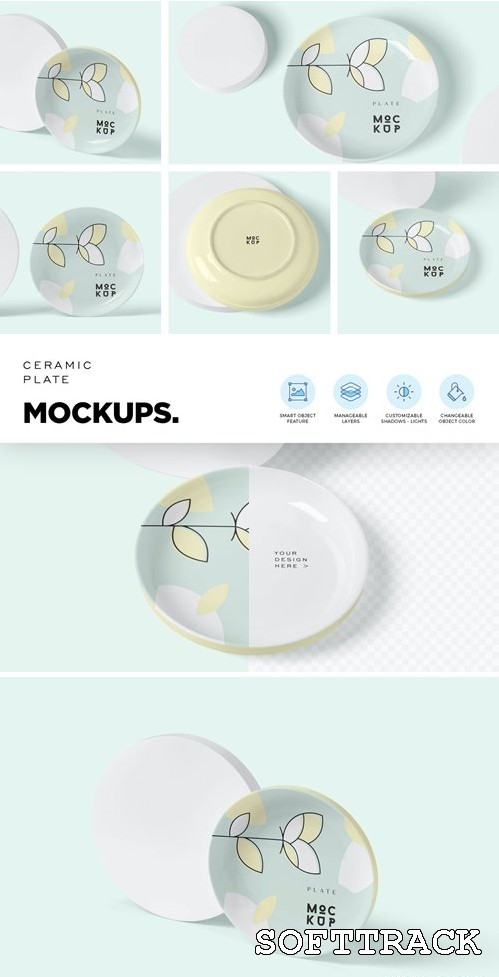 We presenteren ronde mockups met keramische platen waarmee u uw servies en servies geweldig kunt presenteren. Met slimme objectoptie en goed beheerde lagen waarmee u het ontwerp, de kleur, schaduwen en achtergrond met één klik kunt aanpassen.