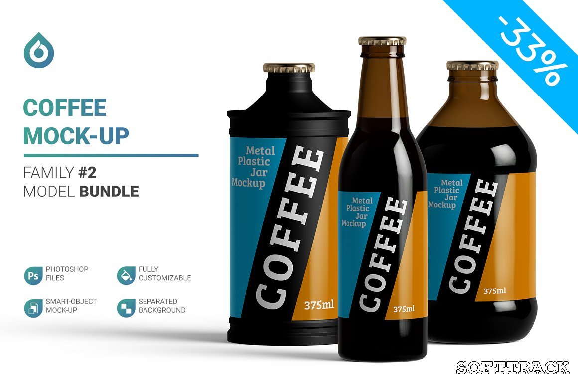 4 kant-en-klare koffies beschikbaar. Of u zet de koffie af en laat alleen een lege fles achter. U kunt de kurkkleur en reflecties wijzigen of alles uitschakelen. 3 vooraf gemaakte fleskleuren beschikbaar - Smoked, Amber & Green. Maar je kunt je eigen kleur aanpassen met een opvullaag of het gewoon transparant laten - helemaal aan jou. Ook kunt u de opaciteit van flessen regelen - alsof u deze volledig ondoorzichtig of absoluut transparant kunt maken.