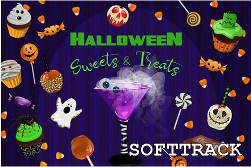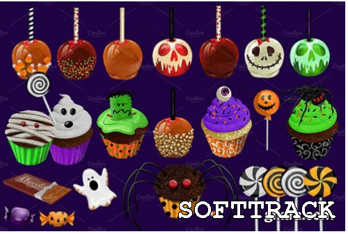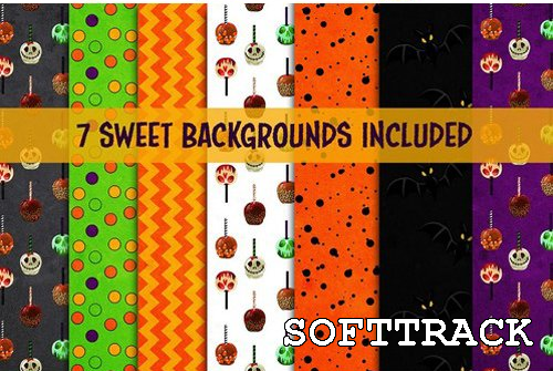 Trick or treat, haal je snoep! 32 Halloween-snoepjes en -traktaties grafische clip art-elementen + 7 digitale achtergrondpapieren. Een lekkere suikerhigh begint hier!