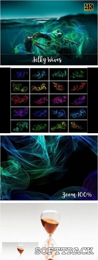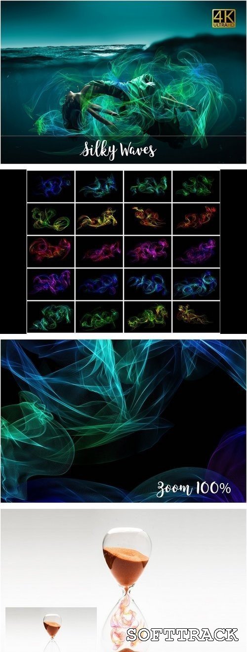 U krijgt 20 Silky Waves-overlays (ongeveer 4K, 300dpi elk bestand).