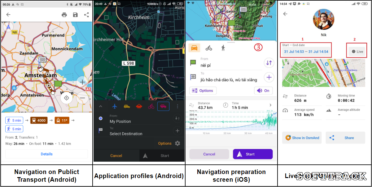 Het is een kaart- en navigatietoepassing met toegang tot gratis, wereldwijde en hoogwaardige OpenStreetMap (OSM)-gegevens. Geniet van spraak- en optische navigatie, bekijk POI's (points of interest), maak en beheer GPX-tracks, gebruik contourlijnenvisualisatie en hoogte-informatie, een keuze tussen autorijden, fietsen, voetgangersmodi, OSM-bewerking en nog veel meer.